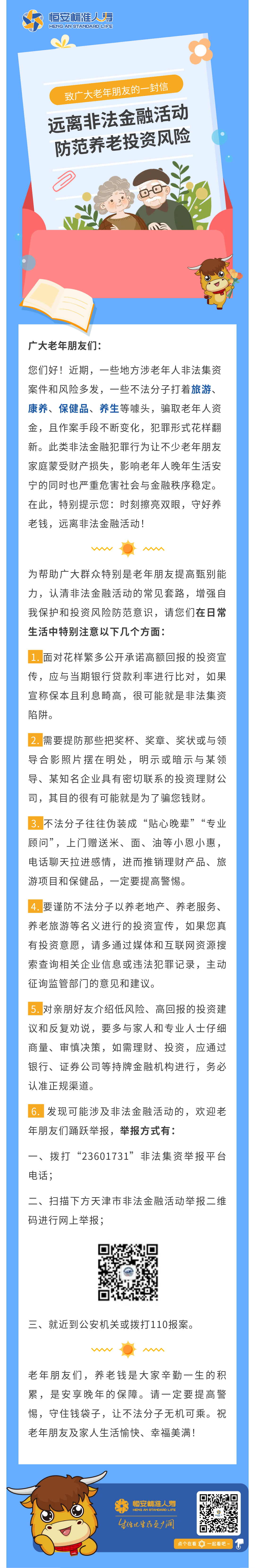 遠離非法金融活動(dòng) 防范養老投資風(fēng)險 ——致廣大老年朋友們的一封信